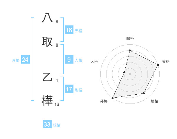 八取 乙樺さんを姓名の画数から五運を鑑定