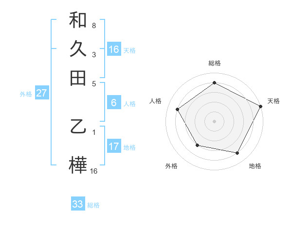 和久田 乙樺さんを姓名の画数から五運を鑑定