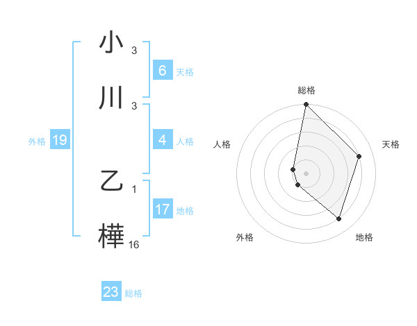 小川 乙樺さんを姓名の画数から五運を鑑定