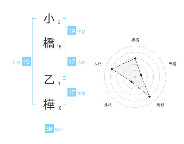 小橋 乙樺さんを姓名の画数から五運を鑑定
