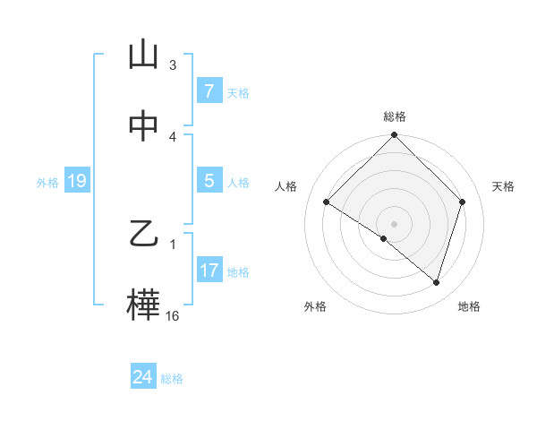 山中 乙樺さんを姓名の画数から五運を鑑定