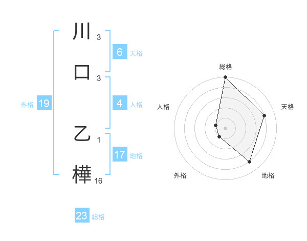 川口 乙樺さんの総格は23画の5点!