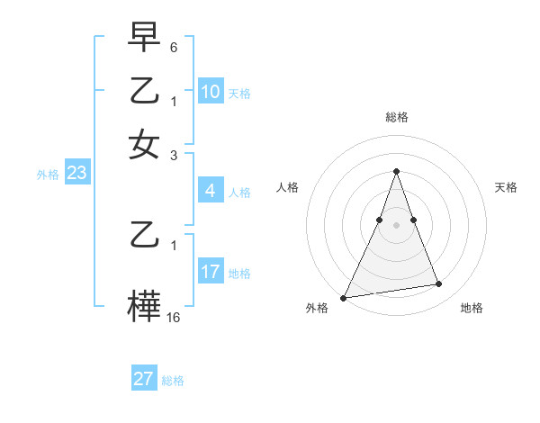 早乙女 乙樺さんを姓名の画数から五運を鑑定