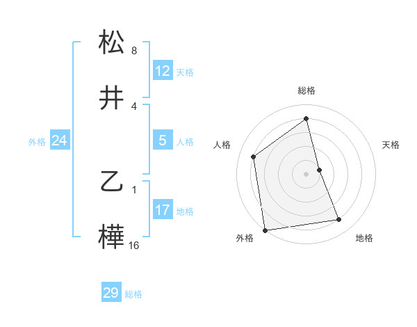 松井 乙樺さんを姓名の画数から五運を鑑定