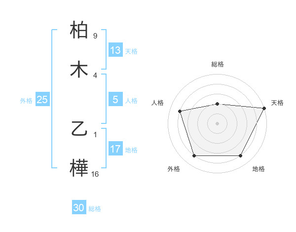 柏木 乙樺さんの天格は13画の5点!