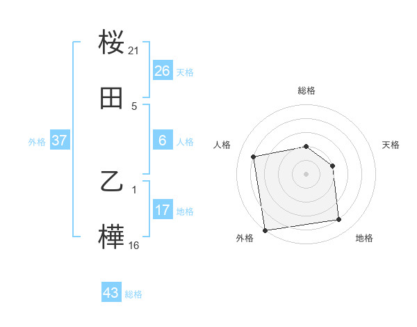 桜田 乙樺さんを姓名の画数から五運を鑑定