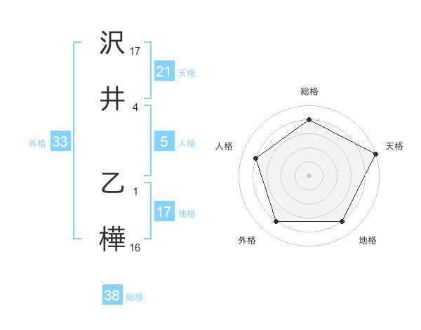 沢井 乙樺さんの総格は38画の4点!
