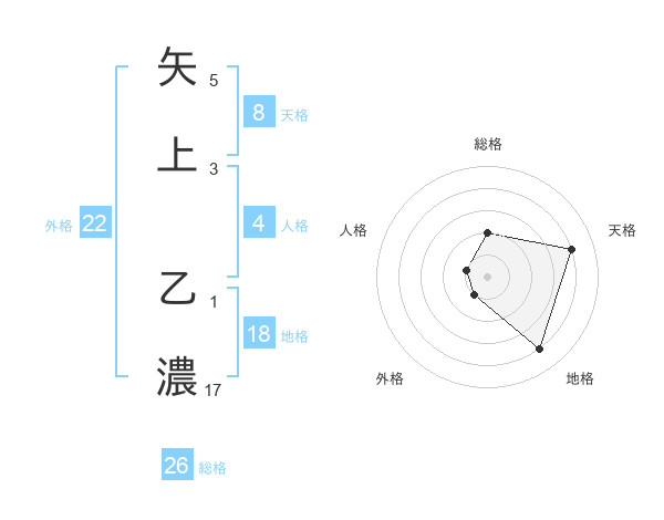 矢上 乙濃さんの天格は8画の4点!