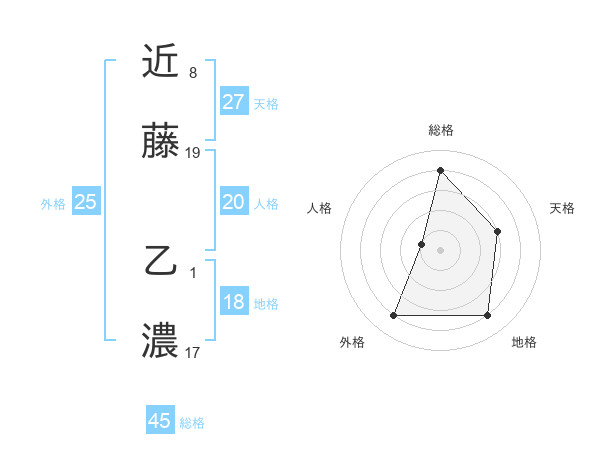 近藤 乙濃さんを姓名の画数から五運を鑑定