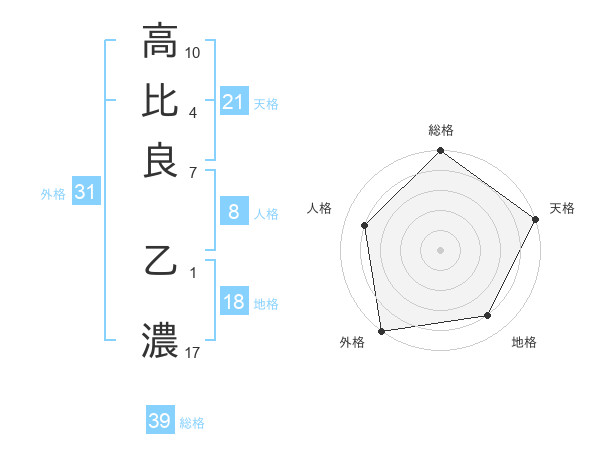 高比良 乙濃さんの外格は31画の5点!
