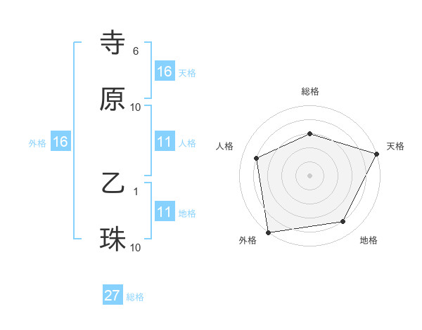 寺原 乙珠さんの天格は16画の5点!