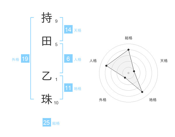 持田 乙珠さんの外格は19画の1点!