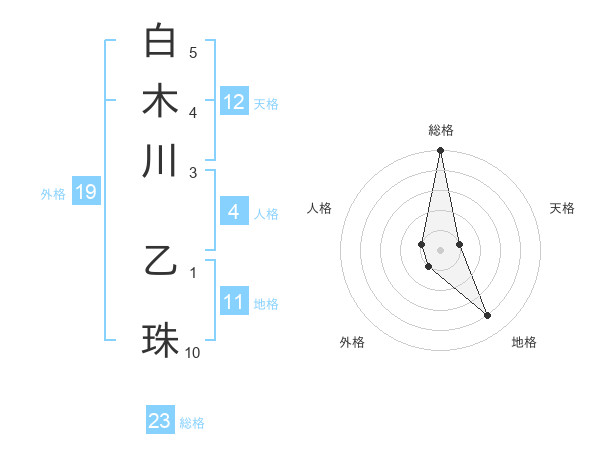 白木川 乙珠さんを姓名の画数から五運を鑑定