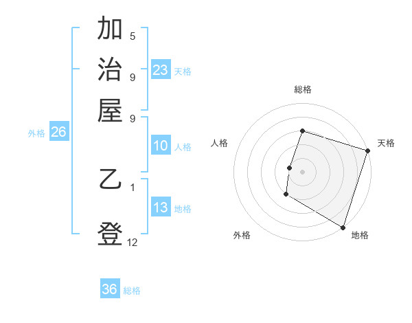 加治屋 乙登さんを姓名の画数から五運を鑑定