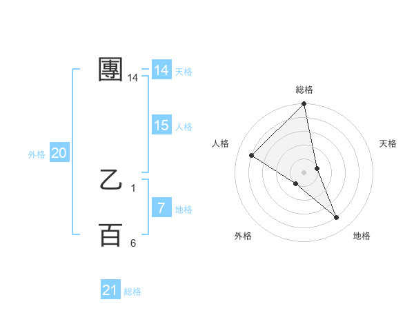 團 乙百さんの総格は21画の5点!