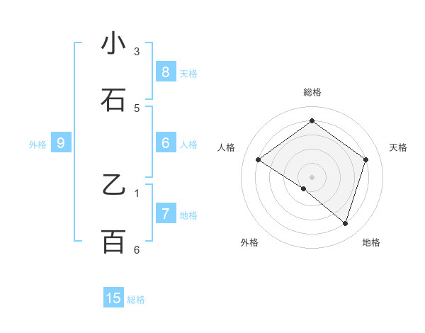 小石 乙百さんの総格は15画の4点!