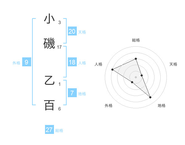 小磯 乙百さんの総格は27画の3点!