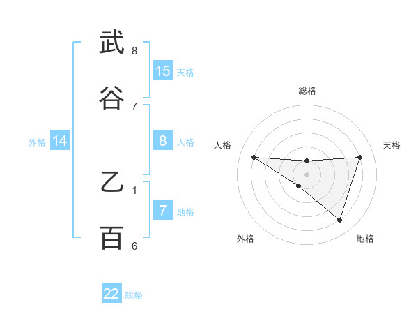 武谷 乙百さんの天格は15画の4点!