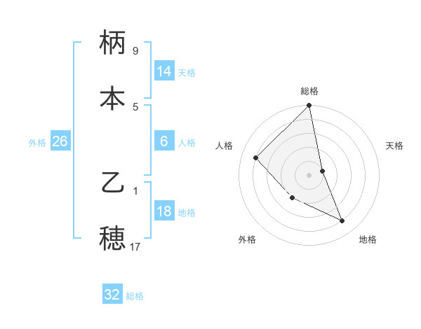 柄本 乙穂さんを姓名の画数から五運を鑑定