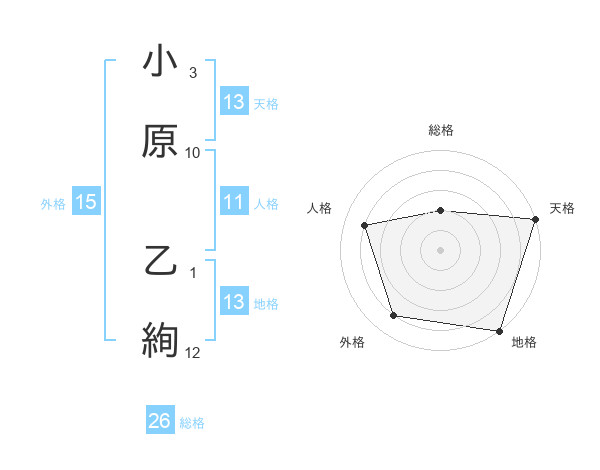 小原 乙絢さんの天格は13画の5点!