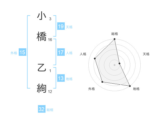 小橋 乙絢さんを姓名の画数から五運を鑑定