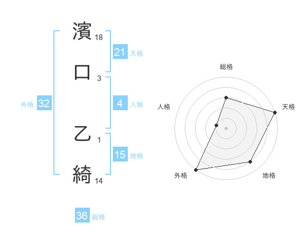 濱口 乙綺さんの外格は32画の5点!