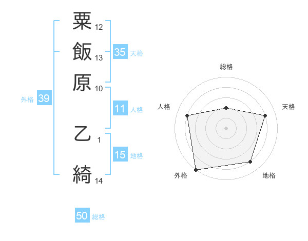 粟飯原 乙綺さんを姓名の画数から五運を鑑定