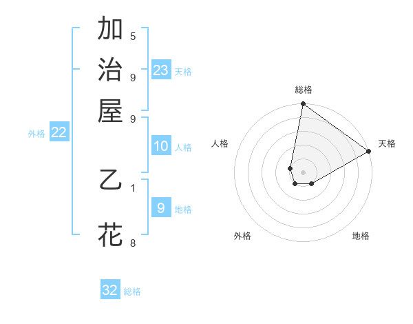 加治屋 乙花さんの天格は23画の5点!