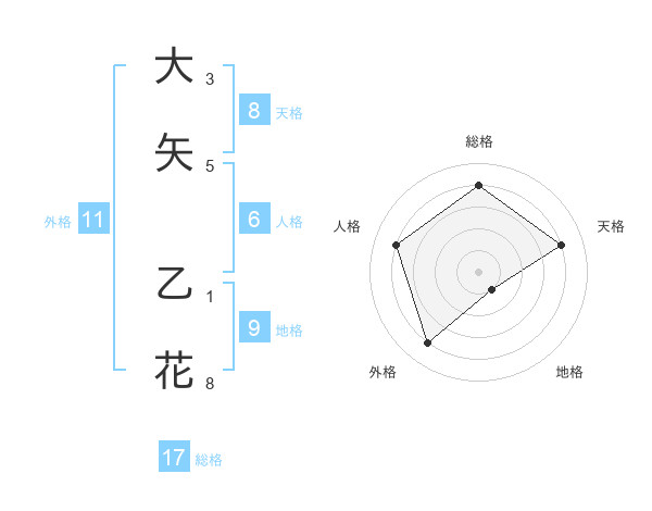 大矢 乙花さんを姓名の画数から五運を鑑定