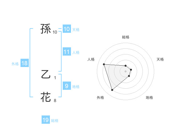 孫 乙花さんの総格は19画の1点!