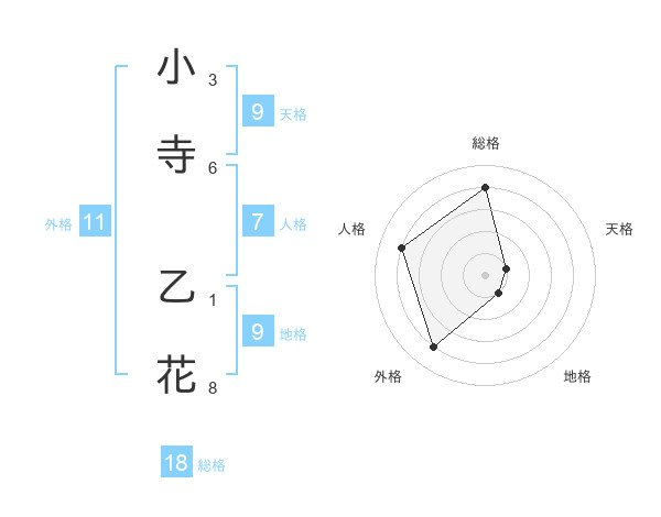 小寺 乙花さんの天格は9画の1点!