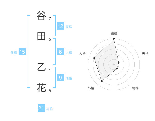谷田 乙花さんを姓名の画数から五運を鑑定