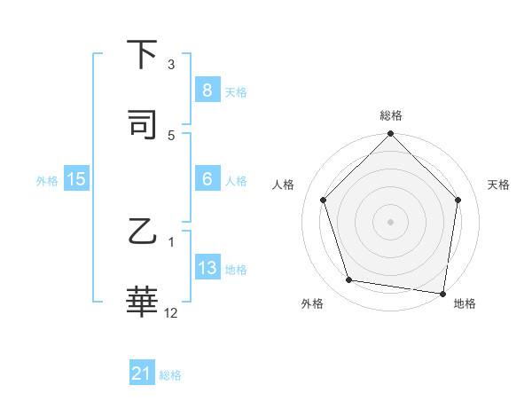 下司 乙華さんの総格は21画の5点!