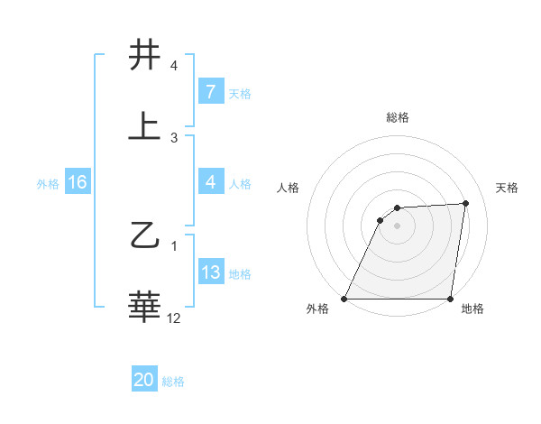 井上 乙華さんの天格は7画の4点!