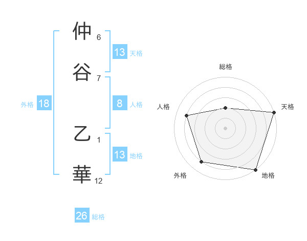 仲谷 乙華さんの天格は13画の5点!