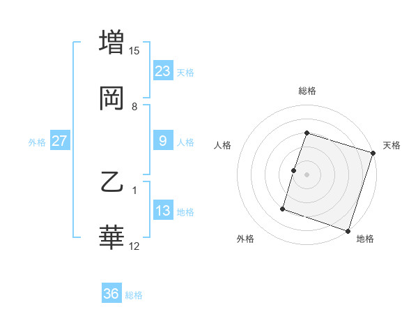 増岡 乙華さんを姓名の画数から五運を鑑定