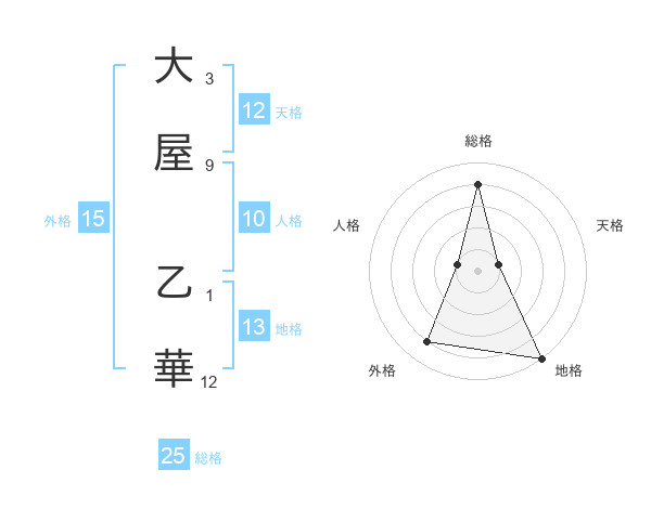 大屋 乙華さんの総格は25画の4点!