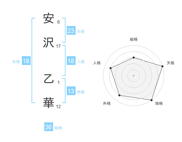 安沢 乙華さんを姓名の画数から五運を鑑定
