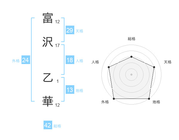 富沢 乙華さんの外格は24画の5点!