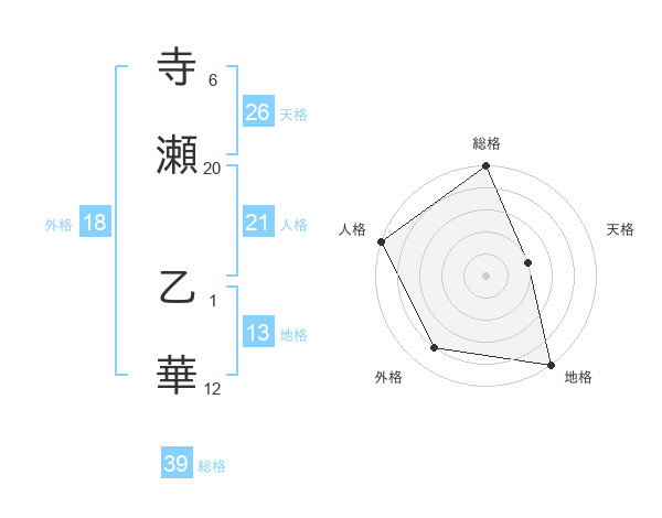 寺瀬 乙華さんの総格は39画の5点!