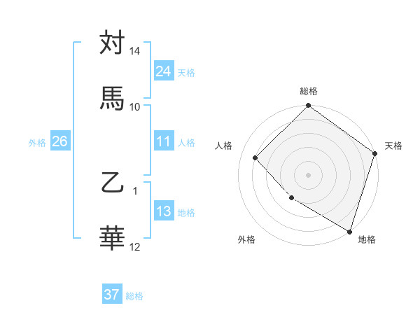 対馬 乙華さんを姓名の画数から五運を鑑定