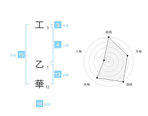 工 乙華さんの総格は16画の5点!