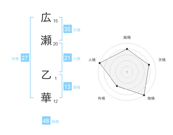 広瀬 乙華さんの総格は48画の4点!