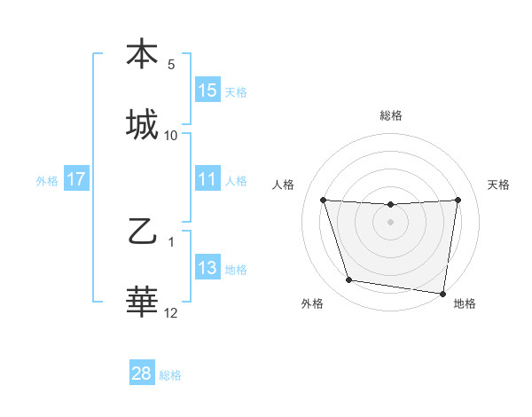 本城 乙華さんの外格は17画の4点!