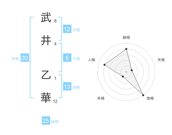 武井 乙華さんの総格は25画の4点!