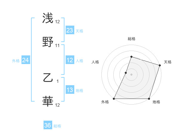 浅野 乙華さんを姓名の画数から五運を鑑定