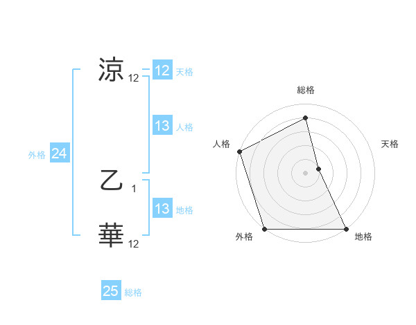 涼 乙華さんの総格は25画の4点!