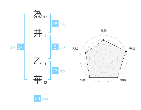 為井 乙華さんの総格は29画の4点!