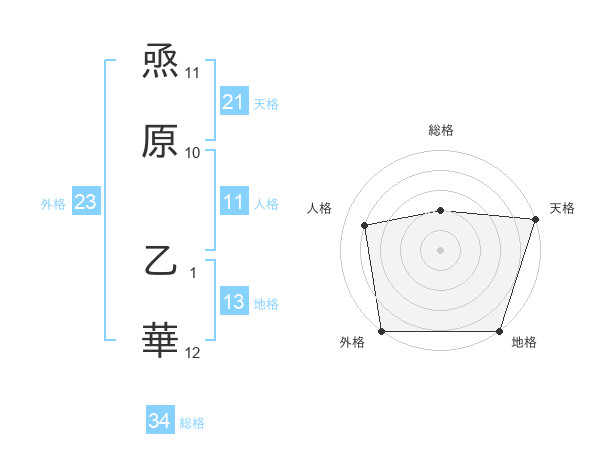 焏原 乙華さんの天格は21画の5点!