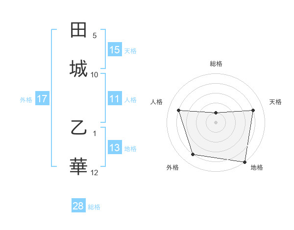 田城 乙華さんの外格は17画の4点!